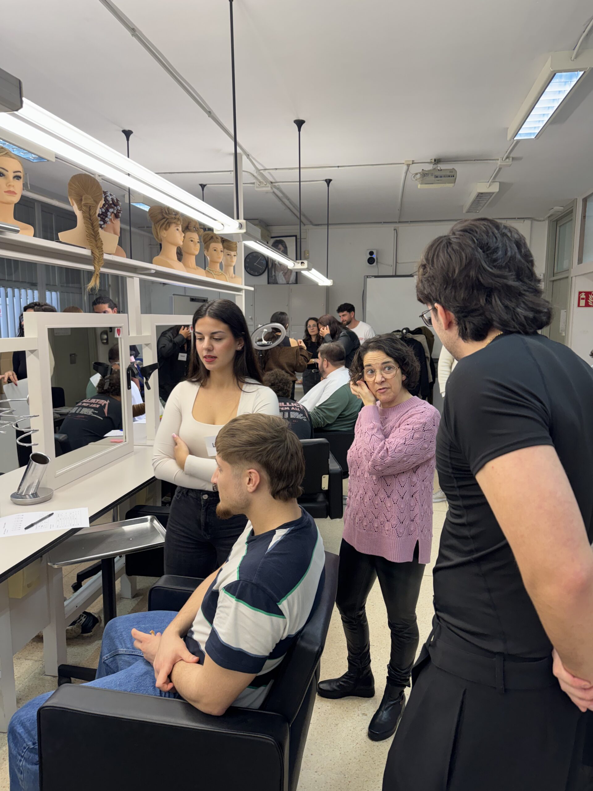 Primer van diagnosticar la colorimetria de cada alumne. Després els van proposar diferents tipus de tallat de cabells i pèl facial. També van fer un estudi de l’oval de la cara, un skin care (cura facial). I també recomanacions d’estilisme segons la morfologia de cada alumne.